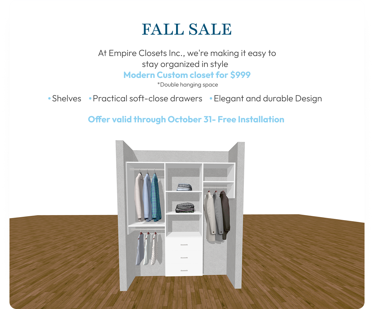 Upgrade your home with tailor-made storage solutions designed to fit your lifestyle. For a limited time, enjoy 20% for a limited time with free installation.